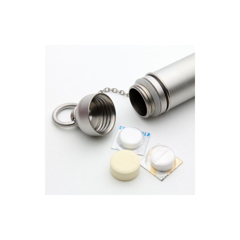 Titanium is used in a cylindrical pill case.