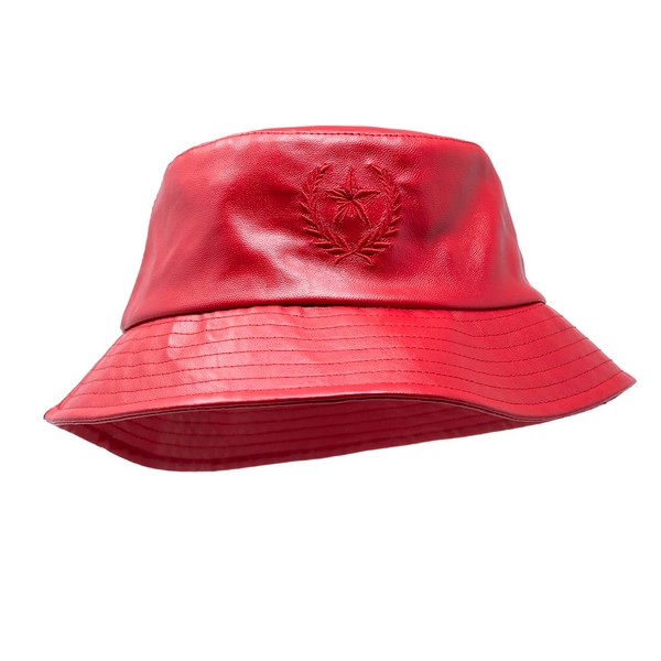 Unisex Red Leather Bucket Hat