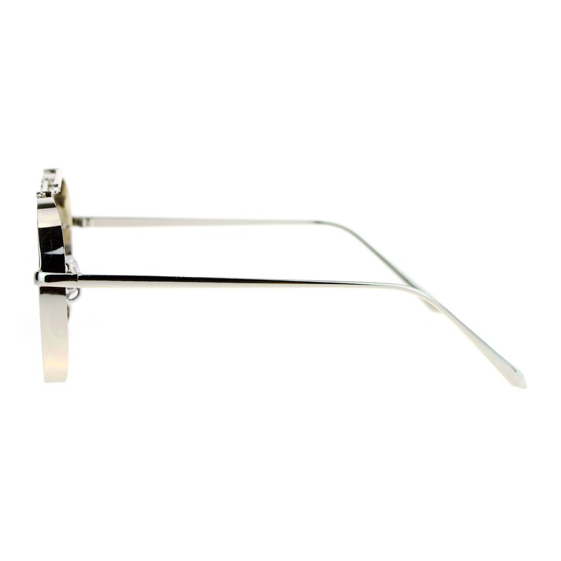 Unisex Round Aviator Sunglasses Metal Frame Silver Flat Blue Mirror Lens UV400