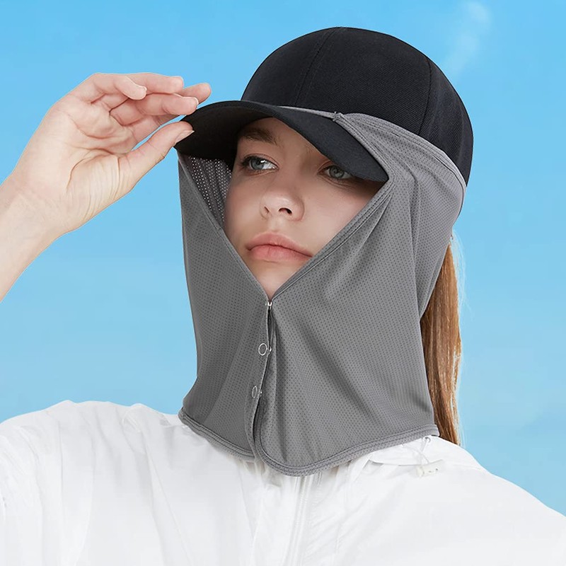 - Neck shade face shield is composed of a unique cooling polyester fabric. 1 Pack includes 1 Neck shield. CAP NOT INCLUDED.