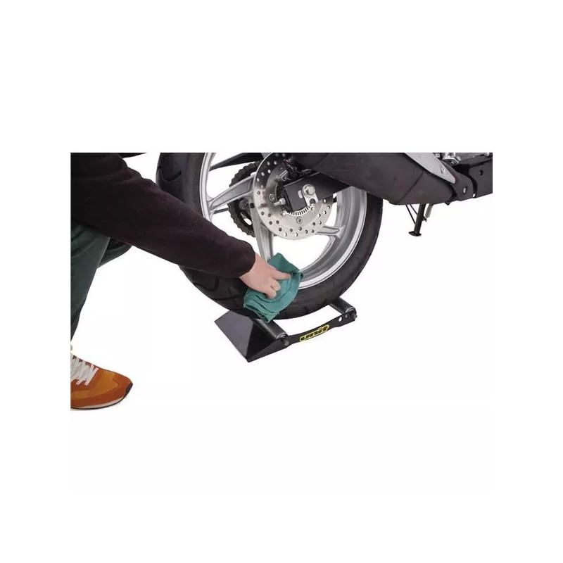 - Allows a motorcycle wheel to be rotated for cleaning or chain maintenance