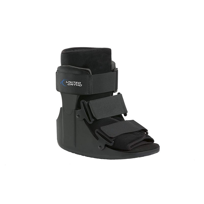 The United Ortho short cam walking boot provides maximum stability and support following injury or post-operative procedures. The short cam walking boot can be used for acute ankle sprains, soft tissue injuries, stable lower leg, foot and ankle fractures and post-operative use. Plastic molded uprights with steel reinforcement provides increased durability. Shock-absorbing insole reduces impact of heel strike when walking. Rocker sole helps promote a natural gait to allow continuation of daily activities. Recommended up to 300 pounds. United Ortho has provided medical professionals and consumers with affordable, high-quality products for more than 40 years. We design, manufacture, and distribute a broad range of bracing solutions, and commitment to customer satisfaction is ingrained in our culture. United Ortho guarantees all products to be free from defects in materials and workmanship for a period of six months from date of purchase. For warranty claims or questions please contact 1-800-227-8748.
