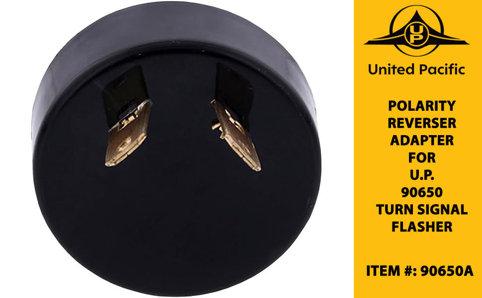 - INFORMATION: Our United Pacific Polarity Reverser Adapter For U.P. 90650 Turn Signal Flasher goes through the same quality control as all our UP products offered. We’ve spent countless hours of research and development to produce the finest products, along with exceptional OE style pieces to fit your classic cars and trucks. We, at United Pacific, listen to our customers as we are always striving to update and create the newest items on the market.