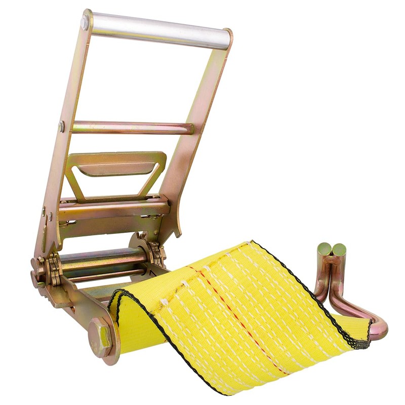 - FEATURES: Our United Pacific Heavy-Duty Ratchet Tie Down Strap measures at 4” by 30’. The 4-inch-wide straps and 30 feet length provides you with a load limit of 5,400 lbs and a break strength of 16,200 lbs. The zinc plated double j-hooks acts as a strong anchor and gives you a more secure hold.