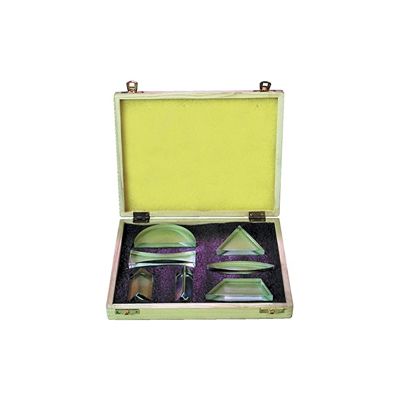 - Assorted lens types and assorted shapes of prisms provides a variation of experiments and results