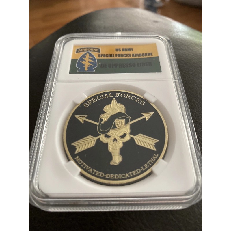 This amazing United States Army Special Forces Challenge Coin is a perfect addition to any collection. The design is original and authentic, making it a must-have for any militaria enthusiast. The coin comes in a beautiful display case to highlight its stunning features.
