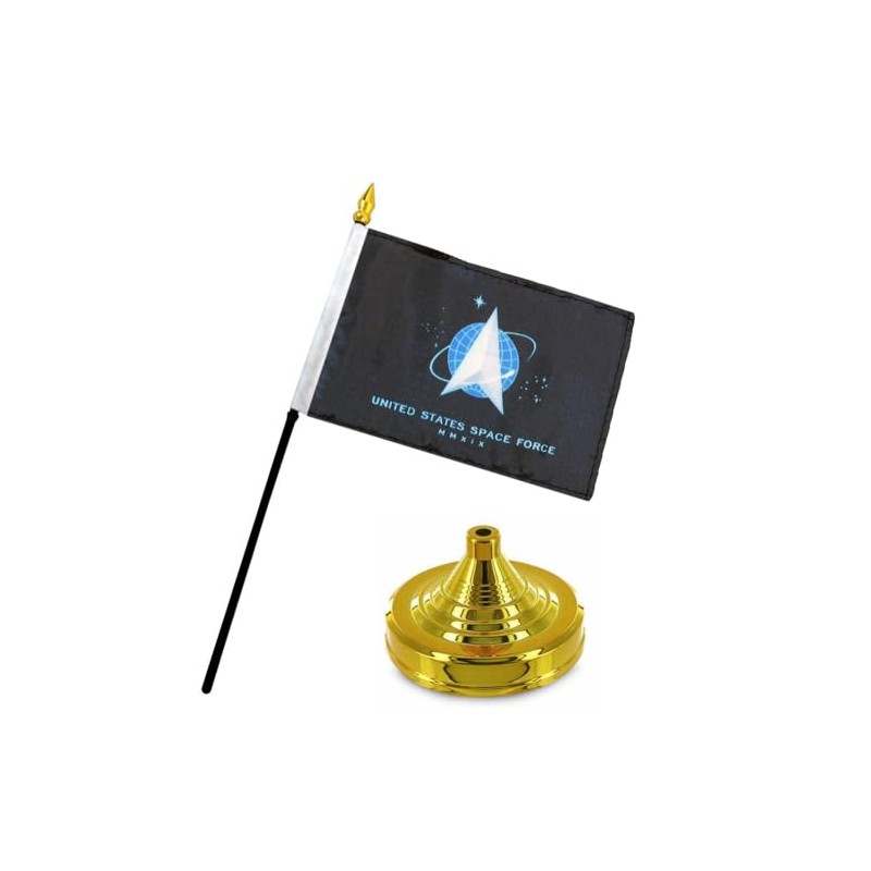 United States Space Force MMXIX Black 4"x6" Flag Desk Set Plastic Table Stick Staff Gold Base