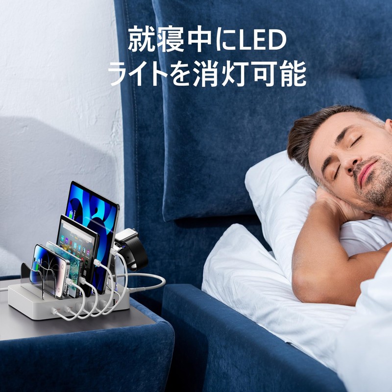 - 【Smart LED Indicator and Charging】 It recognizes charging status with a soft, gentle glow from the corresponding port. When the charged device reaches 100% the light will stop and turn off at any time with the indicator switch on the side. No charging noise, no flashing