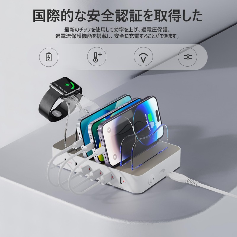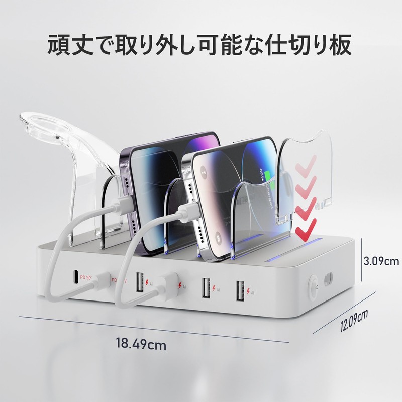 - Package Contents: Unitek USB 6-Port Charging Station (PD 20W + USB A x 4), 1 x 60W Power Adapter, 8 x Adjustable Dividers (7 Heights, 1 x Apple Watch Storage Stand). Please contact us if you are not satisfied with the quality issue of the product due to normal use.