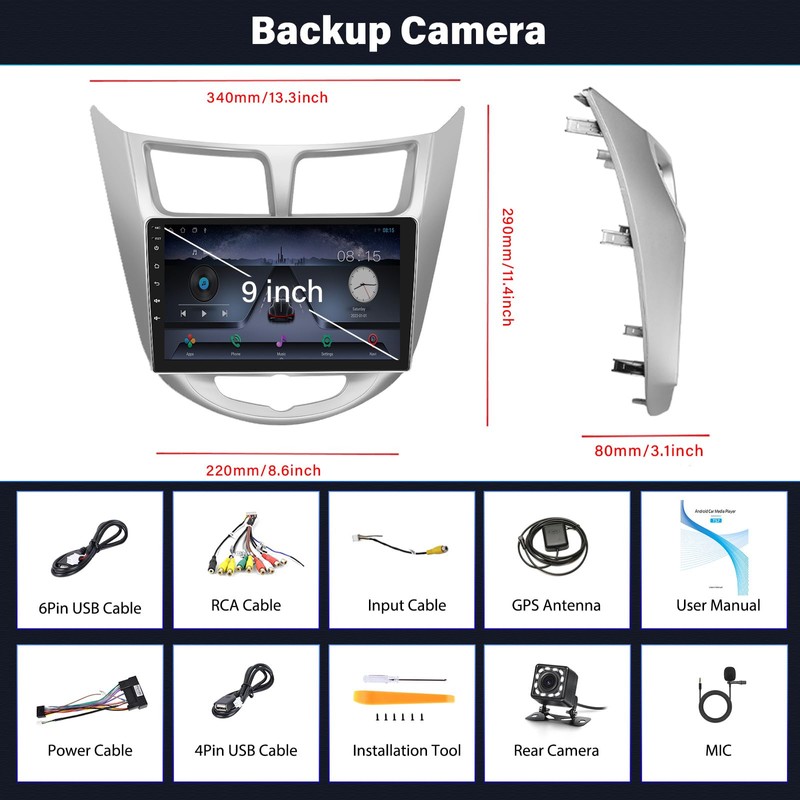 • 【Backup Camera & Steering Wheel Control】The mirror link radio for Hyundai Accent 2014 connect with 12 lights waterproof, night vision and 170 degree viewing backup camera, automatically switch to the reversing image on the 9 inch HD large screen when rear gear is engaged, so you can park easily and safely. Digital audio dash unit for Hyundai Accent Solaris REINA VERNA 2010-2016 support steering wheel control via buttons, you can use various functions conveniently through the control interface