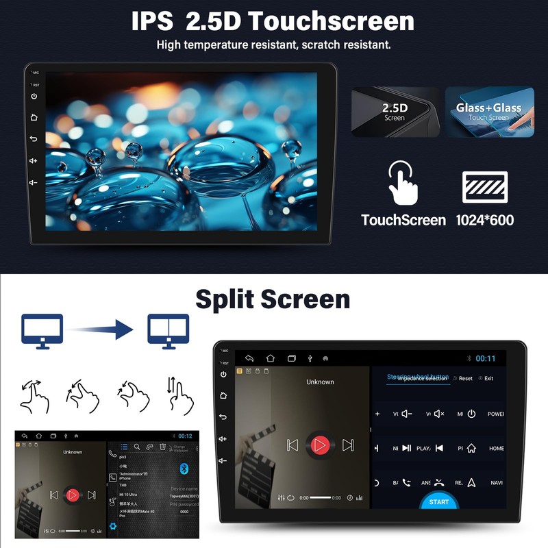 • 【9 Inch HD Touch Screen Android Stereo, Split Screen】The in-dash Hyundai REINA 2010 multimedia car stereo equip with 9 inch HD capacitance 1024*600 resolution touchscreen, you can experience more sensitive touch. The 9” 2.5D tempered glass mirror link Hyundai Accent 2010-2016 radio receiver support 1080P video format output, and split screen, you can display two high definition pages at the same time and share half of screen with your family