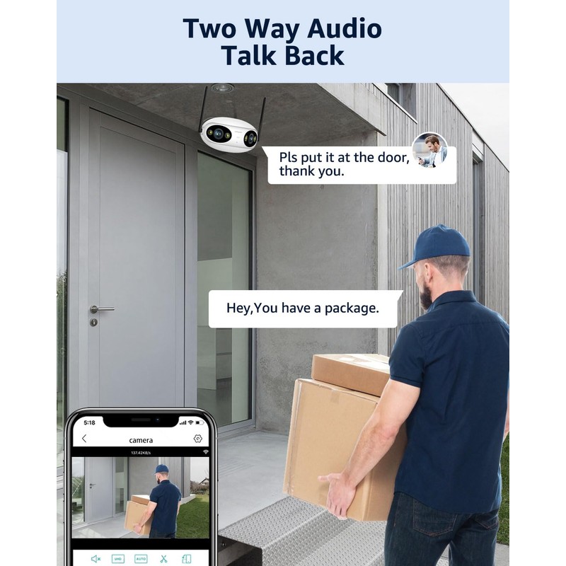 - Dual Lens 180° Ultra Wide Angle & 2K Super HD: Capture broader images in 2K clarity with less distortion, thanks to the two lenses and wide viewing angle. No surveillance blind spots anymore.