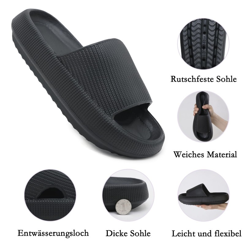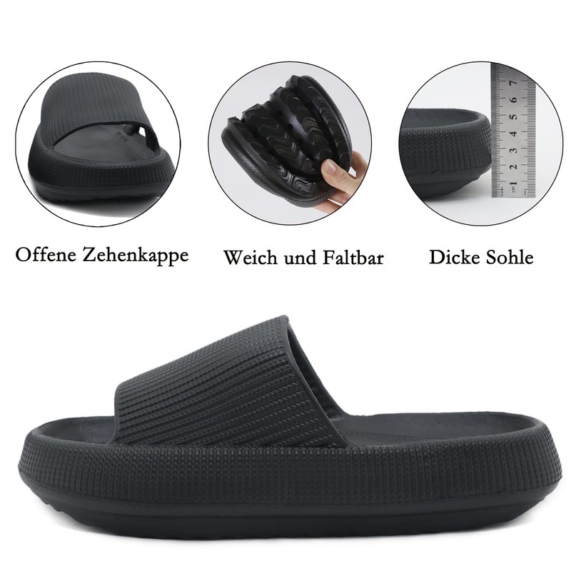 - Slip-on design, easy to put on and take off. With 4 cm thick sole, soft, flexible and foldable, like walking on a cloud.