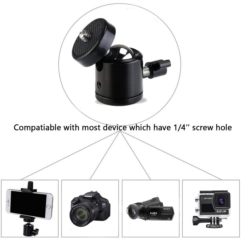 - ✅Wide Application:: The top with 1/4'' male thread , bottom with 1/4'' female thread hole, and come with a Removable 1/4 hot shoe interface adapter. This tripod ball head set can be used for cameras, or other devices that with standard 1/4" thread hole. such as: camera, projector, flash light, light stand, tripod etc.