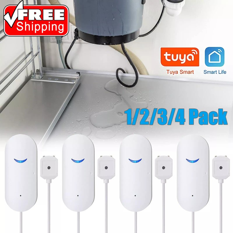 Universal 1-4Pack Smart Water Leak Sensor Detector APP Alarm WiFi Home Water Leak Detector - 4 PACK