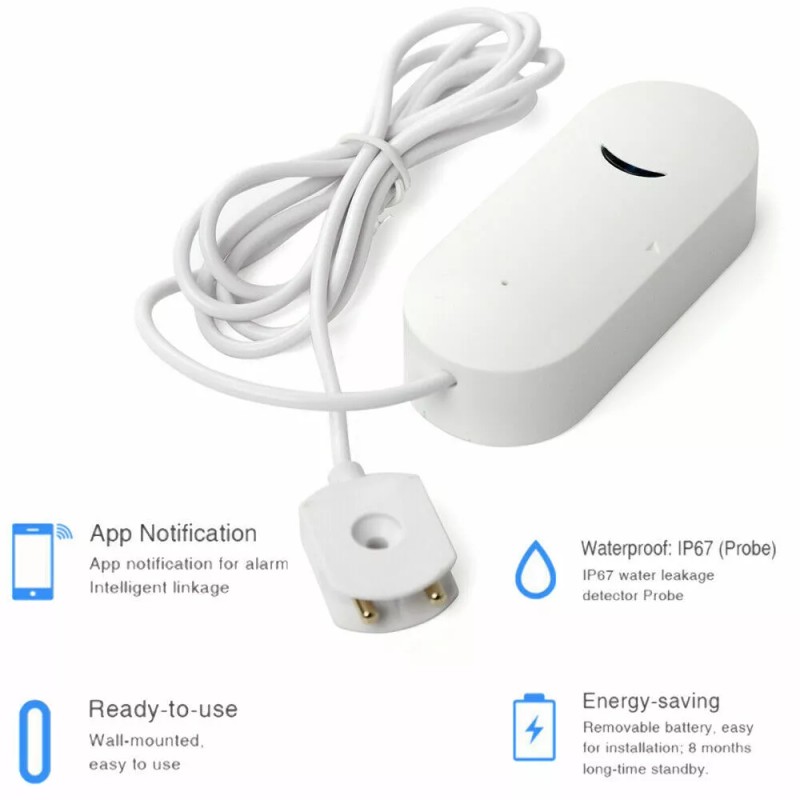 Compact & Sensitive: The smart water sensor features a compact detection head fitted with sensitive gold-plated probes, fit into small spaces.