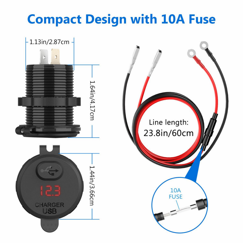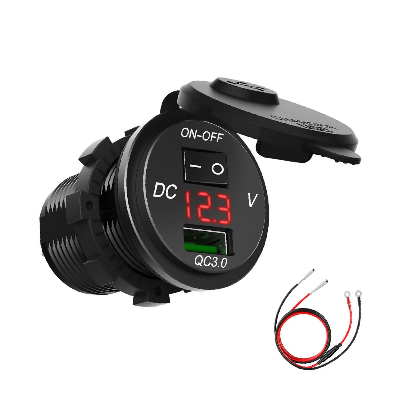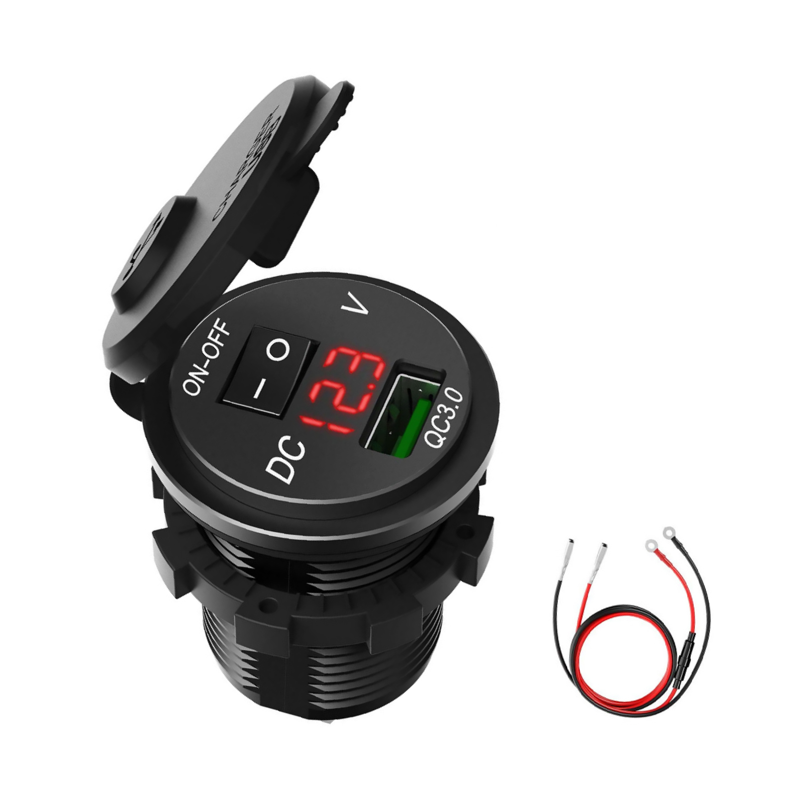 Universal 12V-24V Red LED USB Car Fast Charger Socket Adapter w/ QC3.0 Port mm