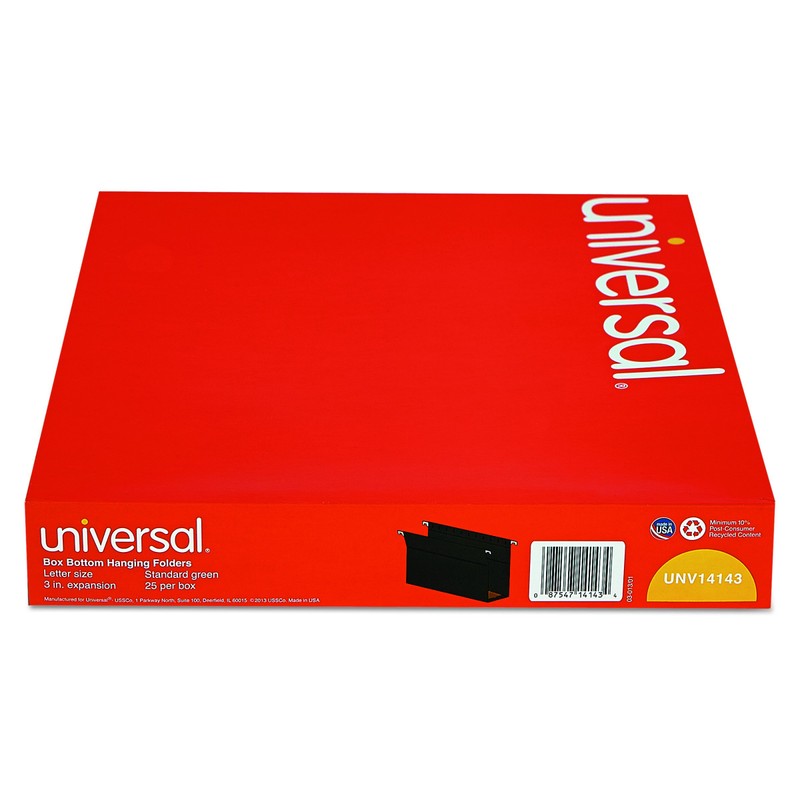 Universal 14143 Three" Box Bottom Pressboard Hanging Folder, Letter, Standard Green, 25/Box
