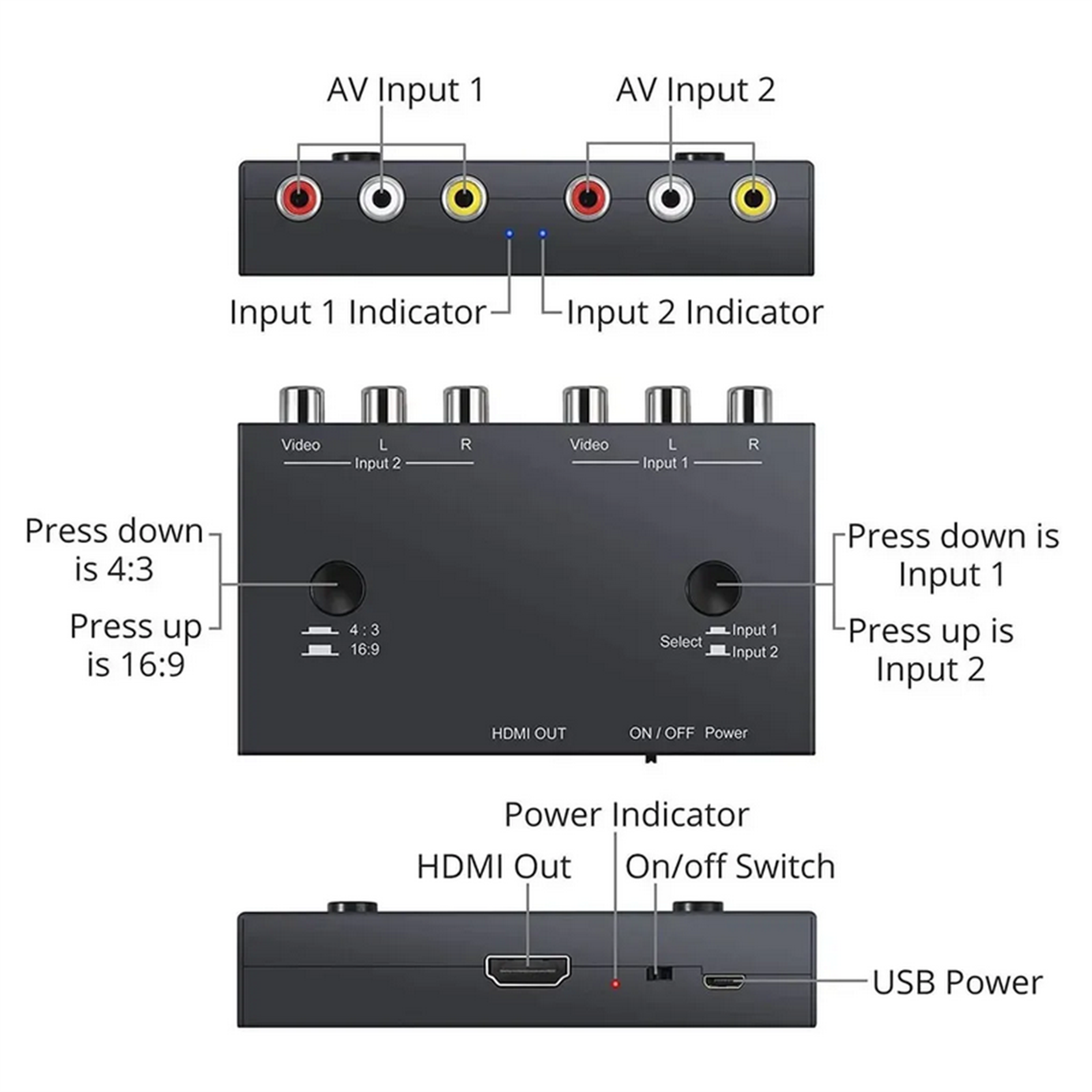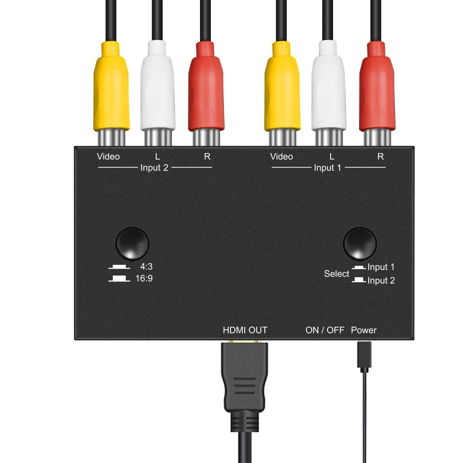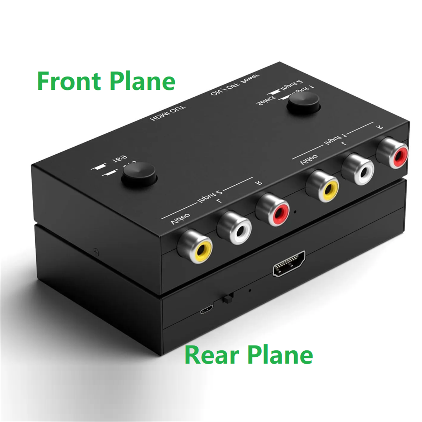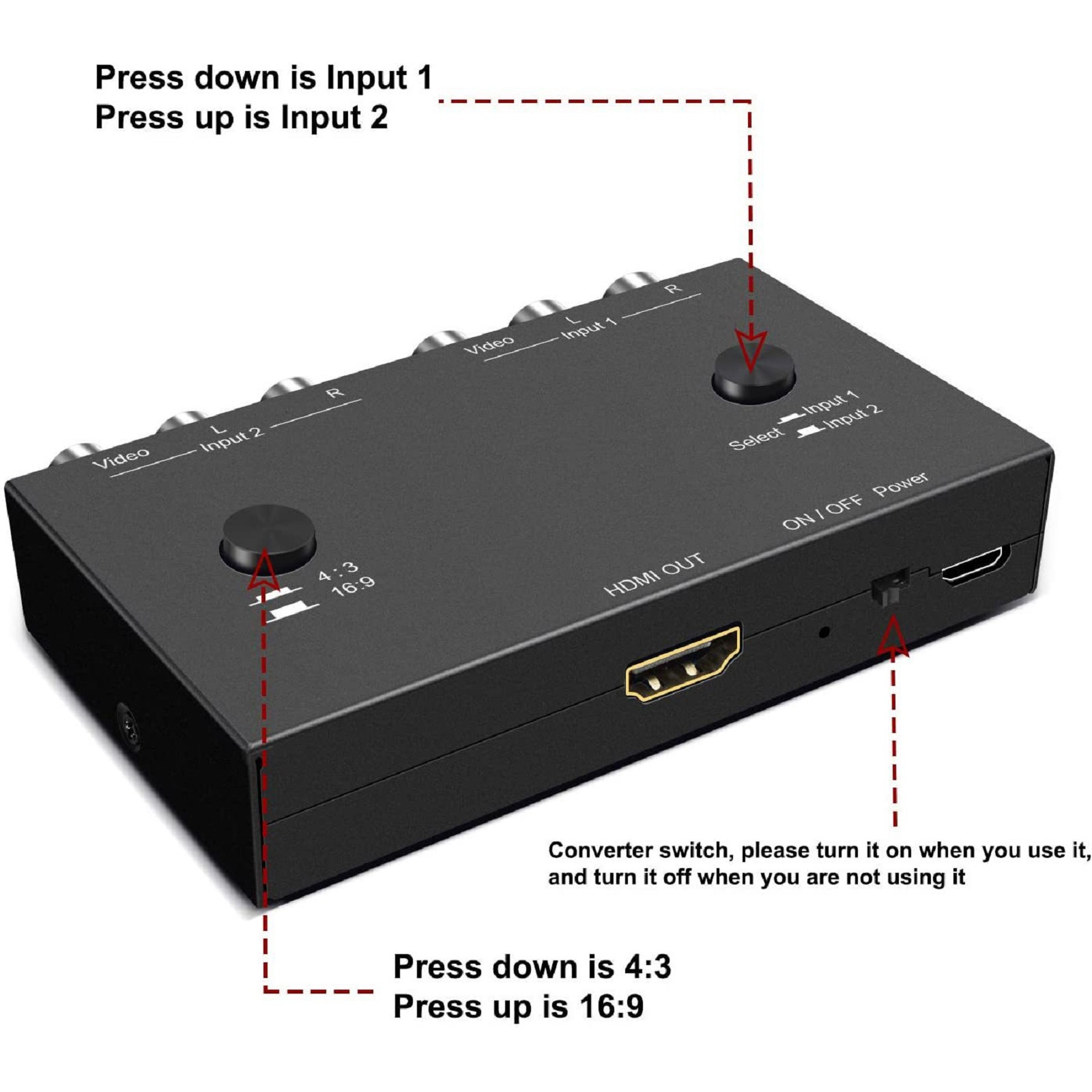 5. 2AV Switcher/2AV To HDMI Converter: Provide Advanced Signal Processing with Greatprecision, Colors, Resolutions, and Details. 2 Port AV to HDMI Converter