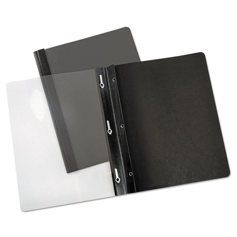 Universal 56116 Paper Report Cover, Tang Clip, Letter, 1/2" Capacity, Clear/Black (Box of 25)