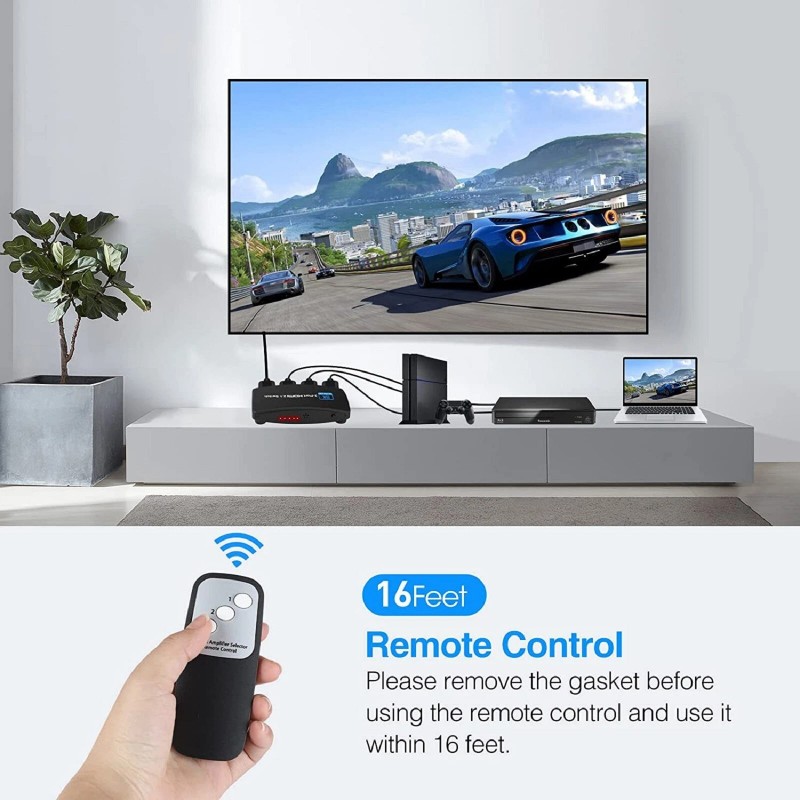 2. HDMI 2.1 HDMI SWITCH 3 IN 1 OUT : 3 HDMI ports in and 1 HDMI out for various HDMI devices, HDMI switcher 3 ports can work with most devices with standard HDMI interface.
