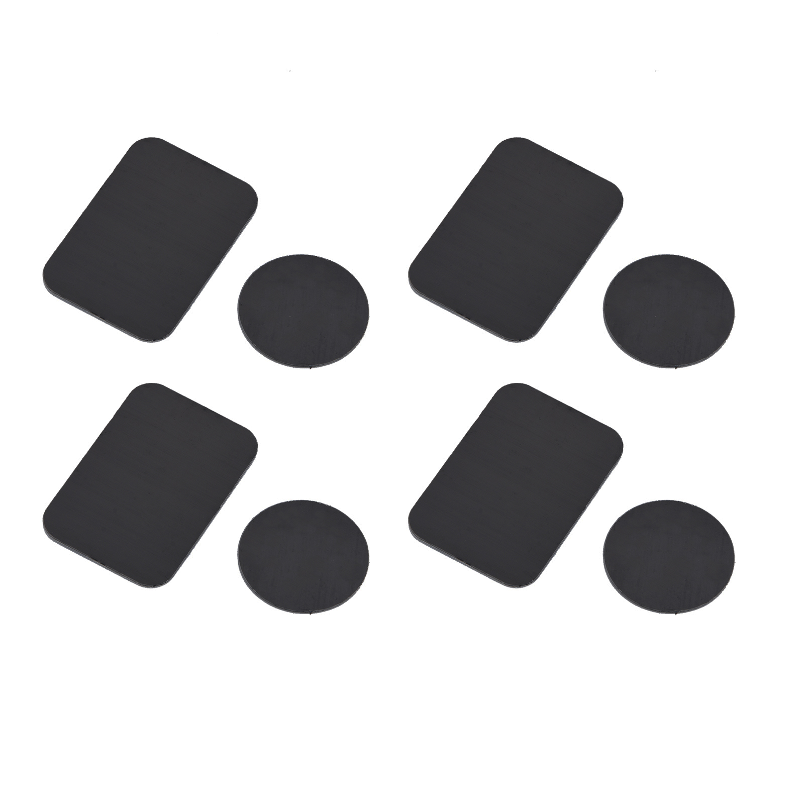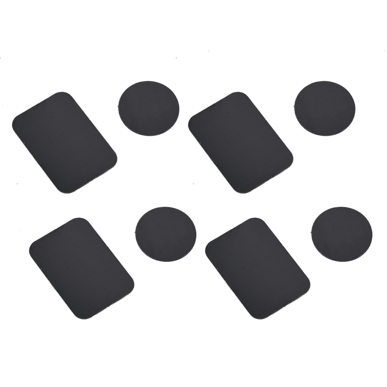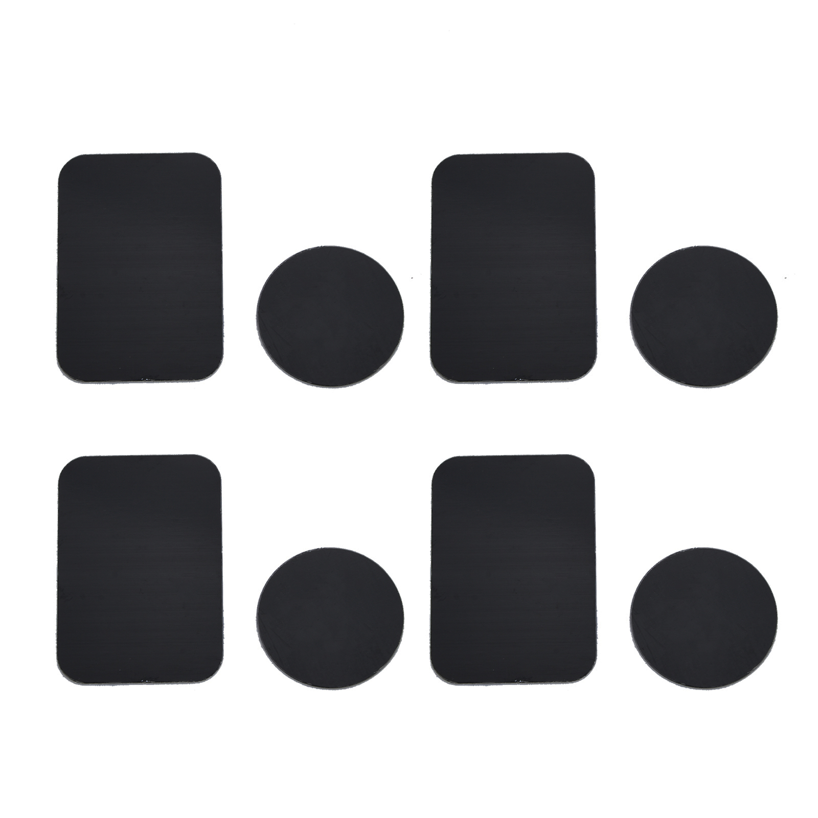 3. All 8 magnet mount plates have strong adhesive on the back. 4 rectangular and 4 round. Provides enough options to use with multiple devices. The rectangular thin metal plate is better for larger phones, mini tablets and GPS devices.
