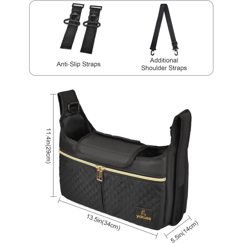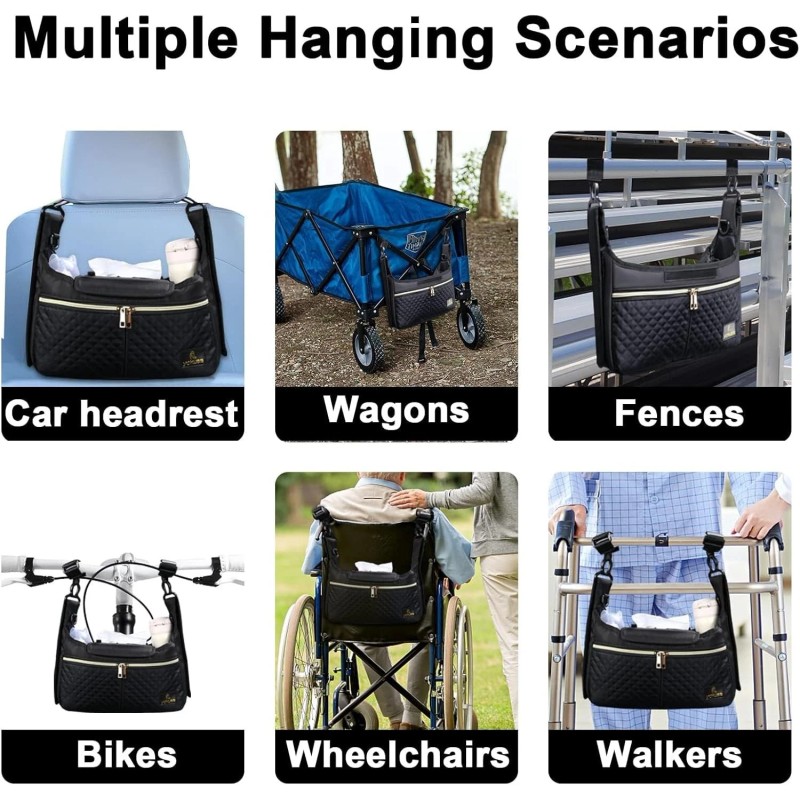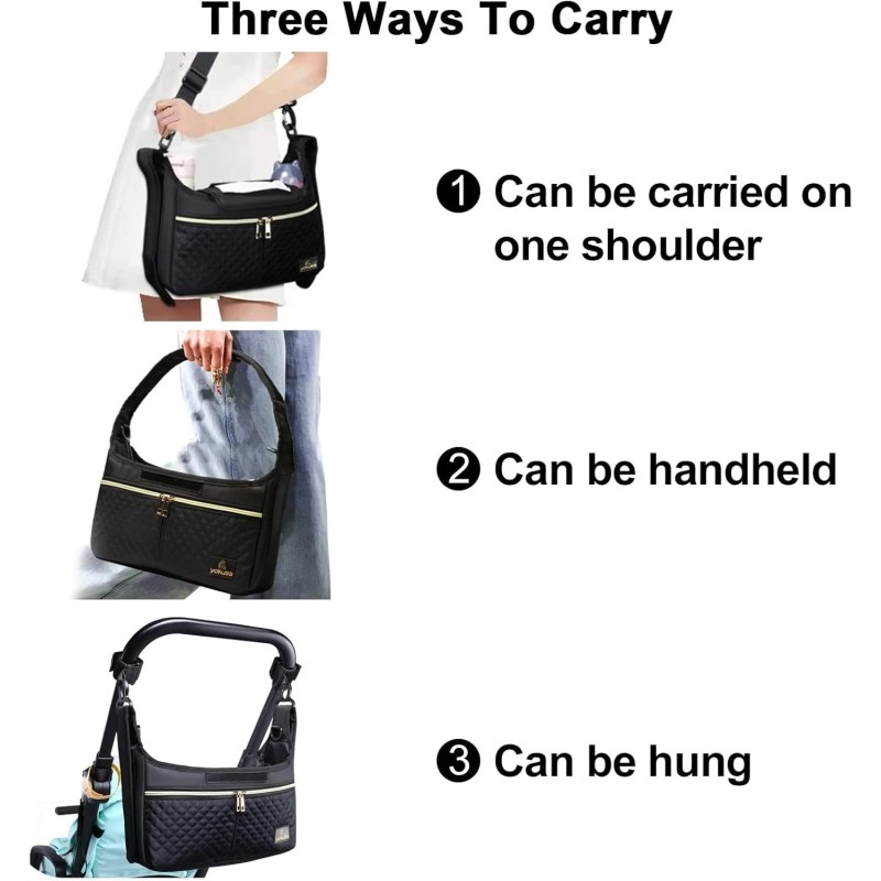· ❤️3 Use Modes ①Very practical stroller organizer after hanging on the stroller by paste Velcro straps or non-slip straps. ②with the shoulder strap, a fashionable crossbody bag for walking. ③the two Velcro straps stick to each other and can also be used as a practical shoulder bag.