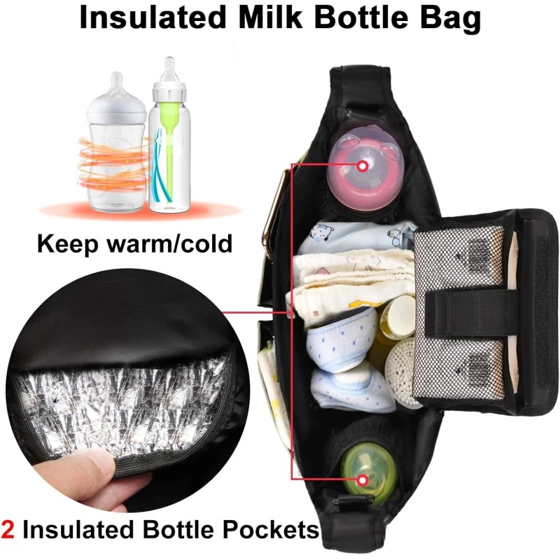 · ❤️Gifts for New Mom ①"Expandable Wipes Pocket" fits all size wipes packs! ②Two insulation cup holder, can hold 600ML (20 oz) water bottle pocket. ③Customized metal zipper (many on the market are plastic). ④Splash-proof material, using low-density material, light weight and soft. ⑤Reinforced stitching, not easy to tear. ⑥Customized Velcro, sticky and stronger!