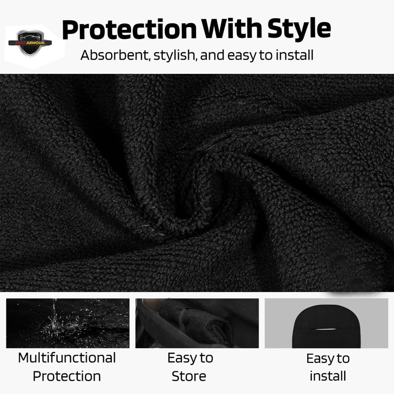 Universal Back Seat Protector Towel -Black – Full Coverage, Soft & Absorbent Car Seat Cover – Machine Washable & Easy to Install