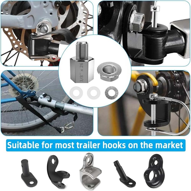 - 【Universal Fit】: Designed for 3/8" x 26 solid axles (9.3~9.5mm diameter), this Bicycle Hub Hitch Adapter ensures seamless compatibility with most standard bike trailers and cargo carriers. No guesswork—just a perfect fit.