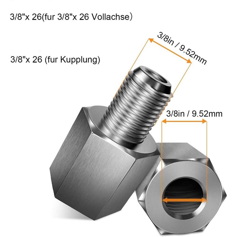 Universal Bicycle Hub Hitch Adapter, Silver 3/8''x26 Axle Coupling for Thrust Axles and Bike Trailers, Durable Bicycle Trailer Hitch Adapter, Bike Accessory for Secure Towing