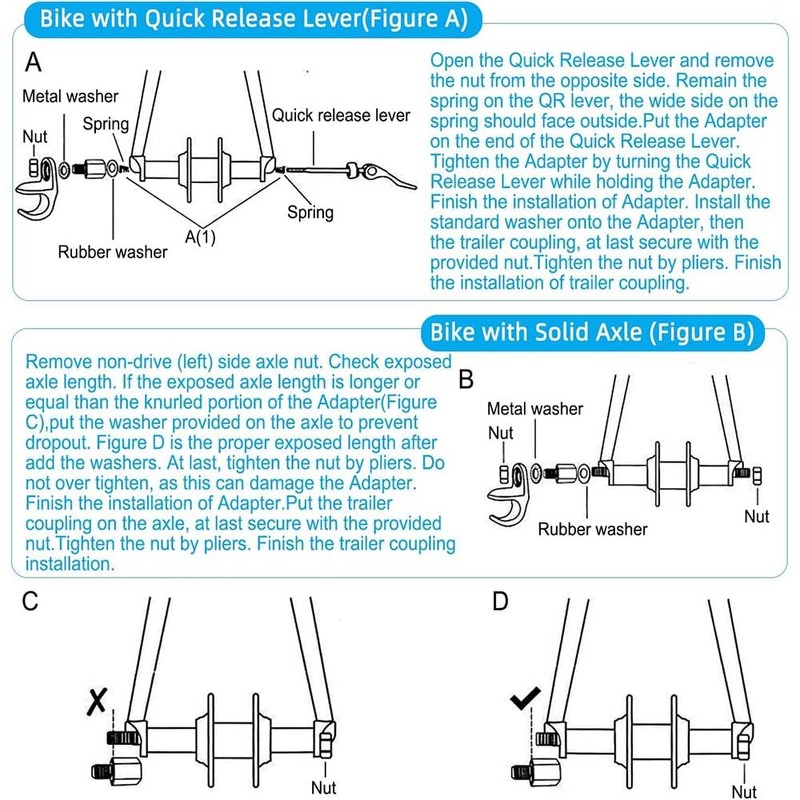 - 【Tool Free Installation】: Mounts in minutes! Adjustable spacer washers accommodate diverse trailer types, making this Bicycle Hub Hitch Adapter the most user-friendly solution for cyclists of all levels.