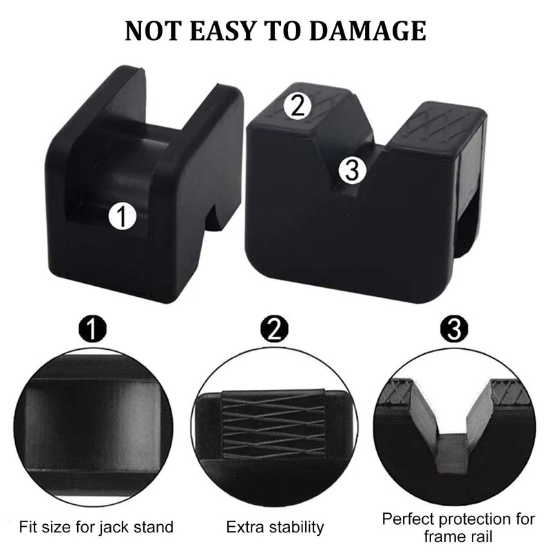 - ▲ Material: The durable rubber structure can support most vehicles and provides better cushioning and pressure resistance. A soft rubber surface that will not scratch painted or coated frame parts.