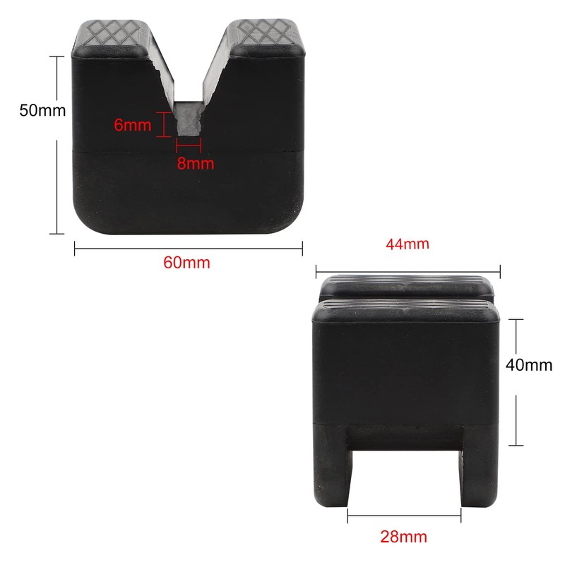 - ▲SIZE:Before purchasing, please measure the length and width of the head of your axle stand whether it fits our rubber mat. Length x width of the rubber block = 60 x 44 mm, depth x width of the base groove = 13 x 28 mm, height x width of the V-groove = 6 x 8 mm. Due to manual measurement, there may be an error of 1-3 mm.