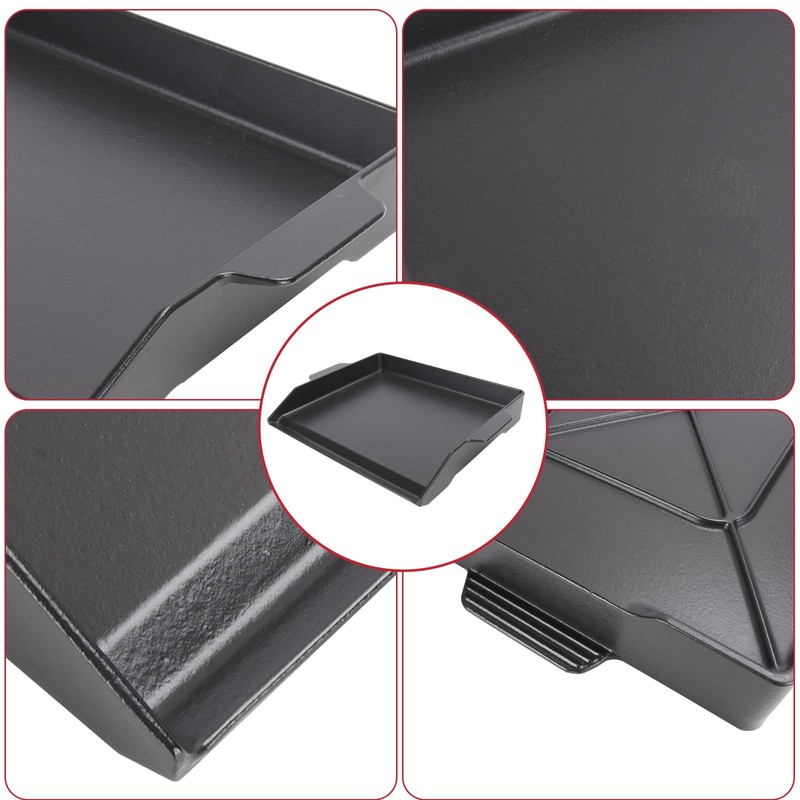 - Nonstick Griddle for Gas Grill: Griddle flat top plate made of non-stick high-quality black cast iron to ensure long-lasting usage, heat resistant - not eay deform and warp, high striped sides prevent grease stains and food splashes to keep food on the griddle, edge polishing to avoid scratching