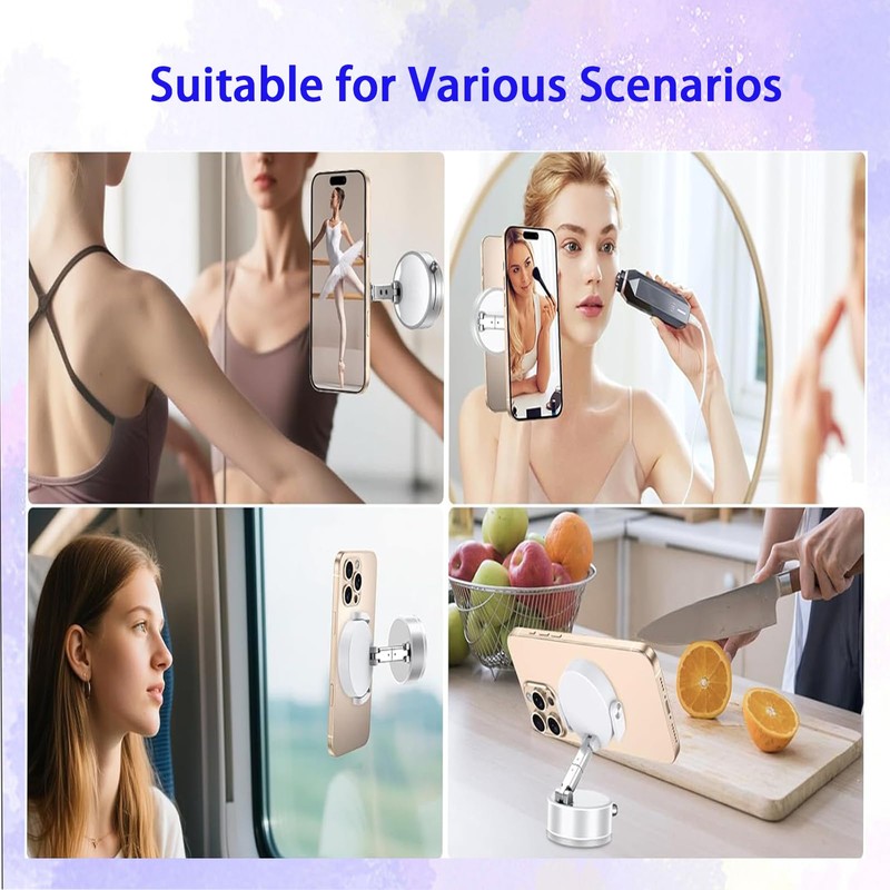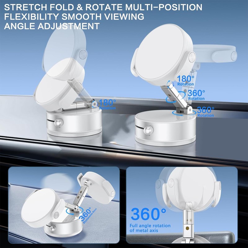 - 【Foldable and Portable Phone Kickstand】This vacuum suction phone holder featuring a foldable and retractable structure, offers versatile viewing angles for optimal phone operation.Weighing only 120 grams, its lightweight design makes it easy to carry in a pocket, making it an ideal travel companion.
