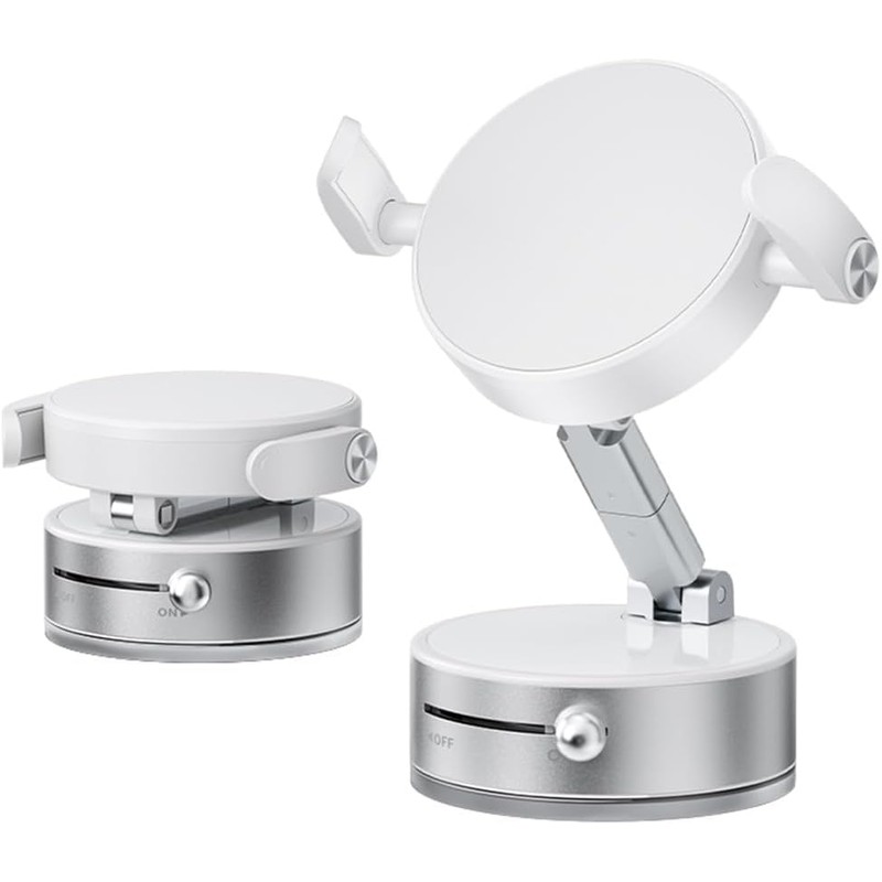 - 【Upgraded Vacuum Suction Technology for Enhanced Stability】This upgraded foldable suction cup phone holder (no power/no glue) features innovative vacuum suction technology, ensuring a firm and stable grip on various surfaces.All what you need do is to flip the button to ON for instant hold,while flip to OFF for easy removal.The high-elastic base enhances suction power, leaving no marks and providing reliable support for your phone in any condition.