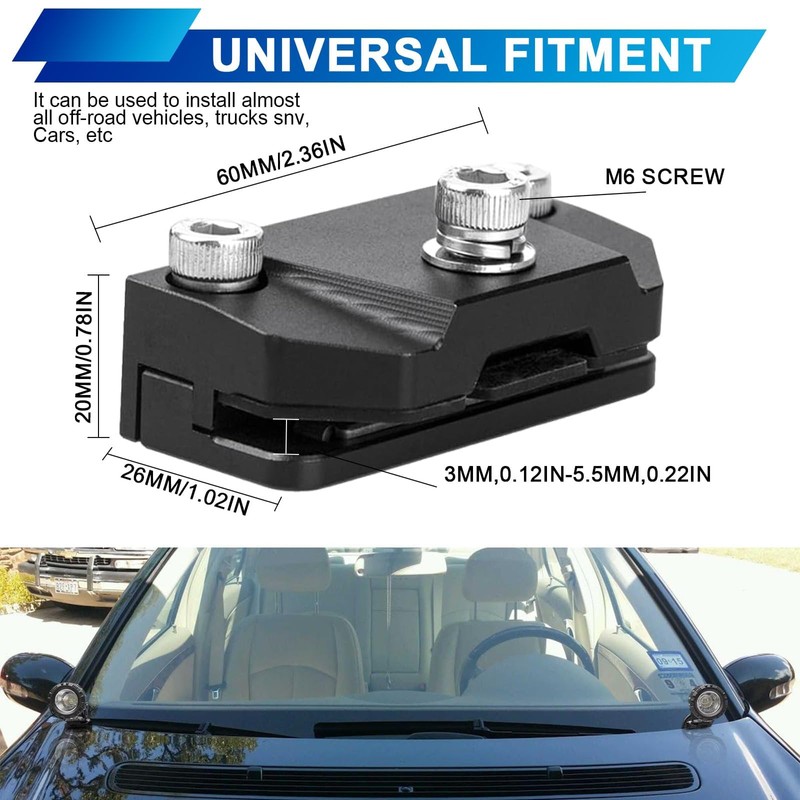 - 𝐒𝐢𝐦𝐩𝐥𝐞 𝐂𝐥𝐚𝐦𝐩-𝐨𝐧 𝐈𝐧𝐬𝐭𝐚𝐥𝐥𝐚𝐭𝐢𝐨𝐧: Simplify LED bar mounting on your hood without the hassle of drilling. Just clamp and secure! The mounting bracket without drilling to mount on the hood Pillar cover.