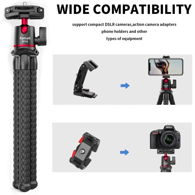 - 【Wide Compatibility】Universal 1/4” screw fits most brand of camera,such as Nikon/Canon/Sony.The phone clip can be expanded between 65-95mm compatible with different size smart phones.