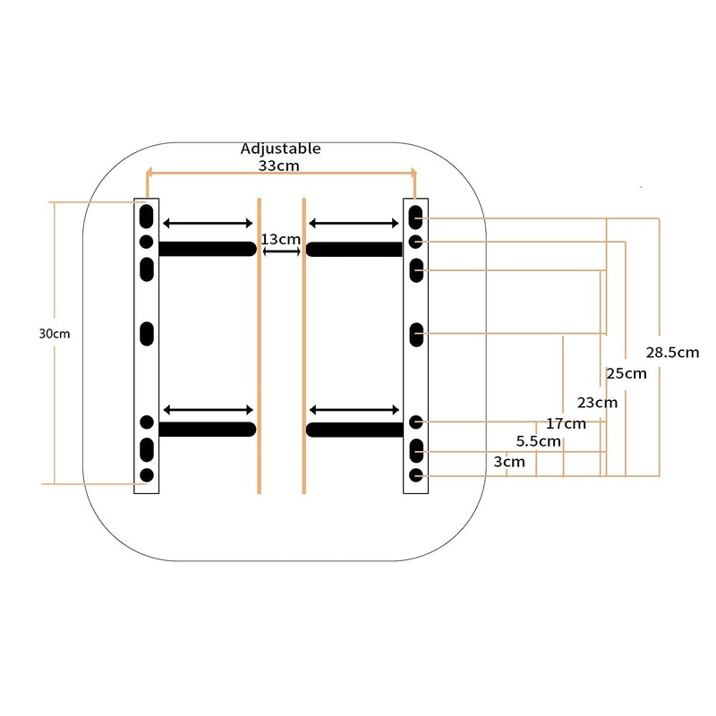 - 【Highly versatile adjustable hole position】Bolt Pattern L x W (mm.): L: 170mm-340mm Installable hole interval),W: 130mm-330mm (adjustable Slide Rails width)Covers 99% of the models, eliminating the tedious installation steps of punching.