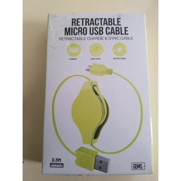 Universal, For Android Retractable Micro USB Charge & Sync Cable Green 2.5' GEMS