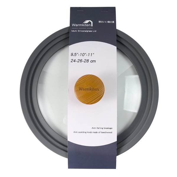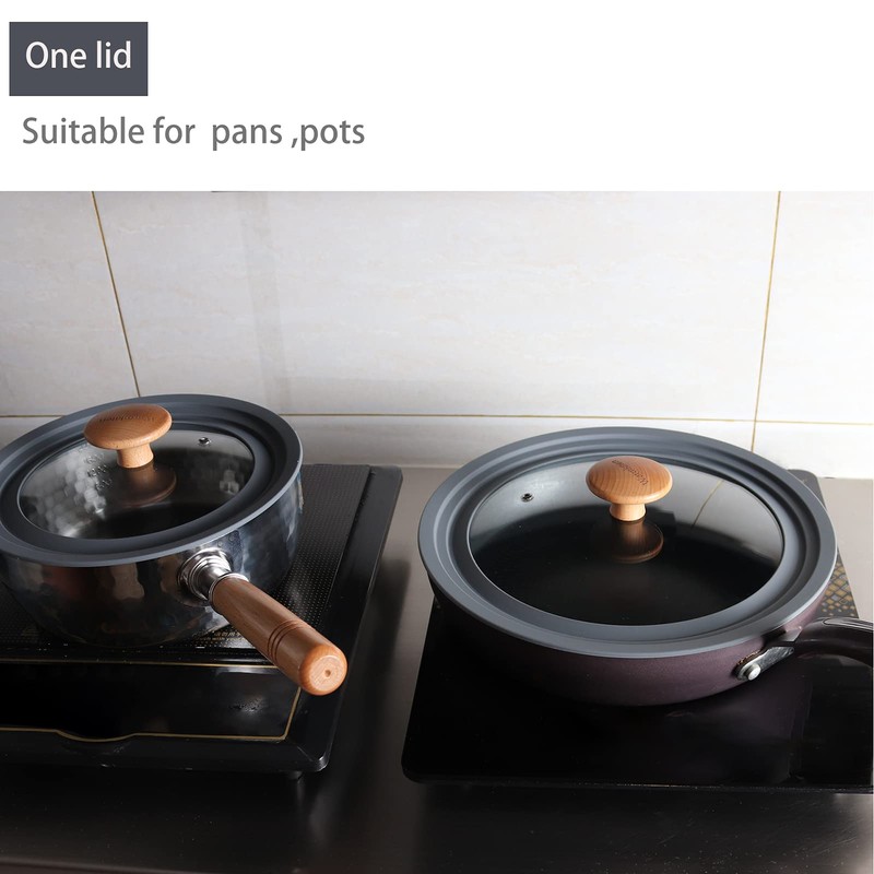 Universal glass Lid for Pots,Pans and Skillets fits all 9.5",10" and 11" Diameter Cookware,Tempered Glass with Silicone Rim,Heat Resistant Knob Made of Beechwood, Multi-Size Cover,Gray