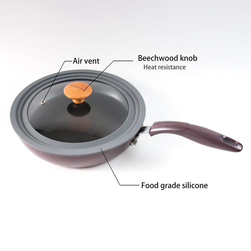 - 【Smart Appearance Design】Combination of wooden knob and tempered glass make the lid more texture, gray silicone rim is fashionable and modern,also not easy to get dirty with Dark color(gray)