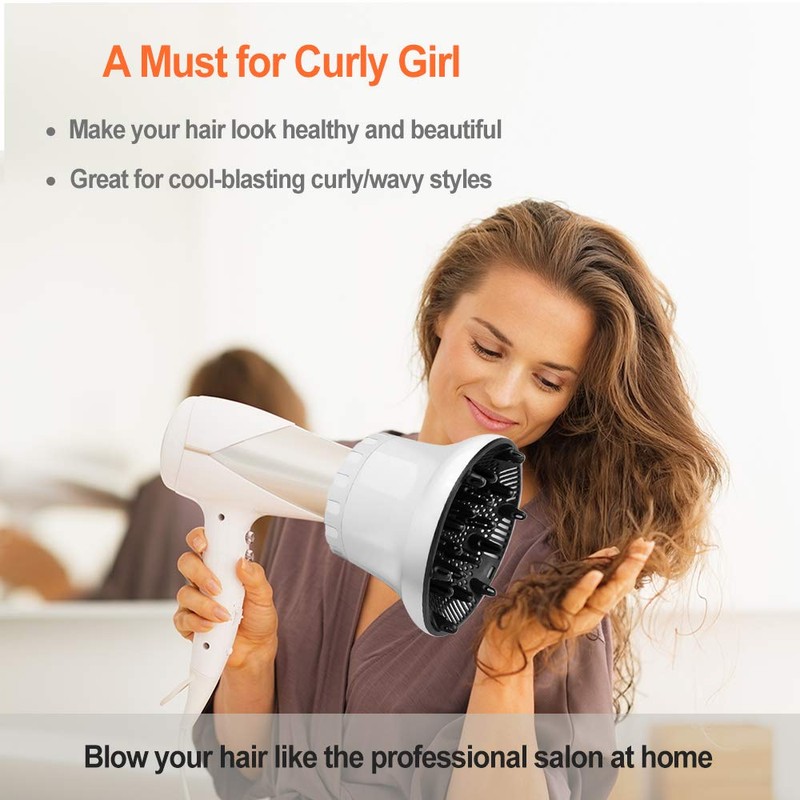 - 【Universal Hair Diffuser】 This hair dryer diffuser is a universal diffuser that fits most hair dryers from 1.4 inch to 2.6 inch. It is an adjustable hair diffuser attachment that matches over 99% of the different hair dryer designs on the market. It opens pretty wide so it can fit a variety of sizes. You no longer have to worry about what type of hair dryer to buy.