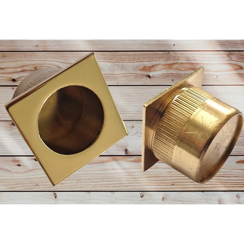 Finger Pull Handle Recessed Edge Flush Square Fitting Pocket Insert Wardrobe Sliding Doors 29mm (Polished Brass)