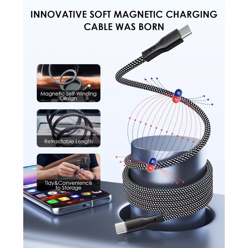 Universal JoesGE USB-C to USB-C Magnetic Self Coil Charger Cable 1M Super Strong
