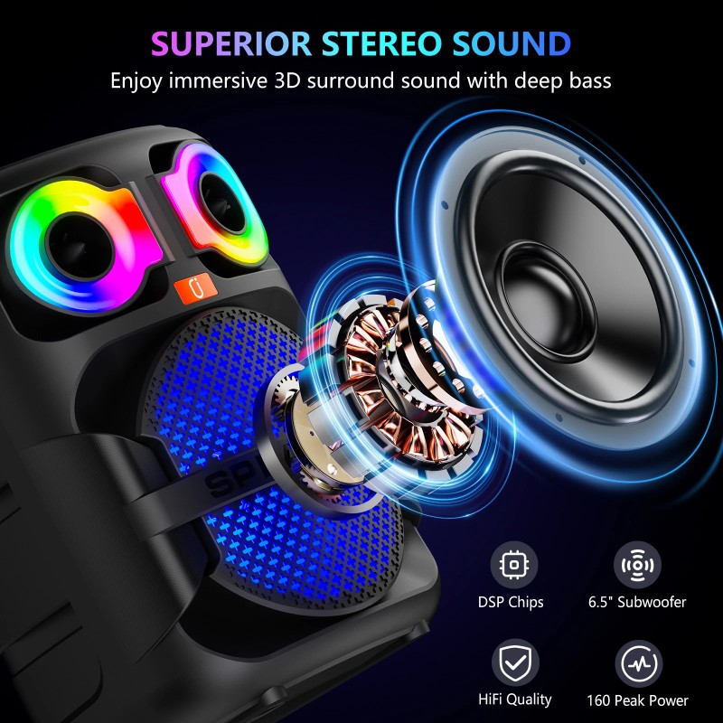 Get ready to elevate your next road trip, party, or karaoke session with the JYX Bluetooth Karaoke Machine! Designed for music lovers and party enthusiasts alike, this versatile machine combines stunning sound quality, vibrant lighting effects, and multiple connectivity options to deliver a memorable experience. Whether you're hosting a family gathering, performing for friends, or enjoying an outdoor party, this karaoke system is guaranteed to light up the fun!