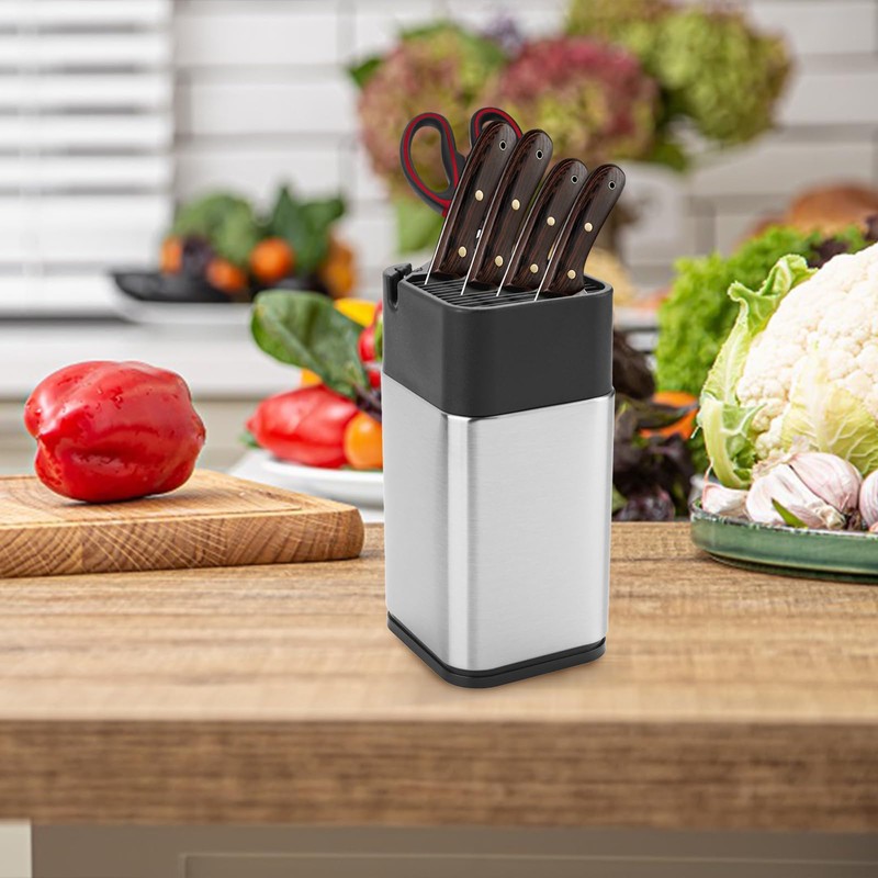 Universal Knife Block, Stainless Steel Knife Holder without Knife Including Sharpening Edges and Scissor Sockets Multifunctional Knife Holder Knife Block Holder