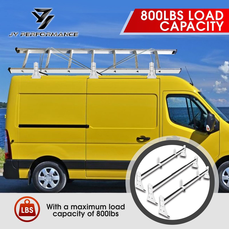 Universal Ladder Rack for Fullsize Vans - Chevy Express 1500 2500 3500, Ford Econoline, GMC Savana - Adjustable Length 57''-65'', 3 Bars, 800 Lbs Ladder Rack, White