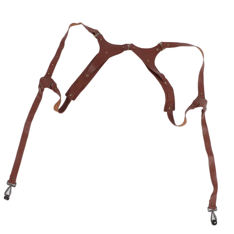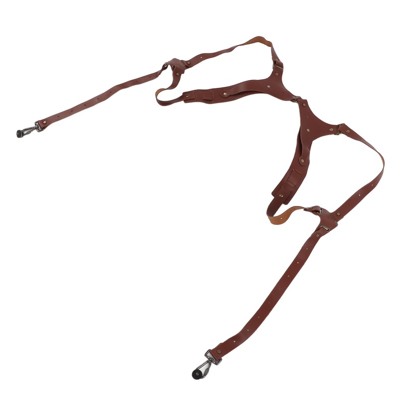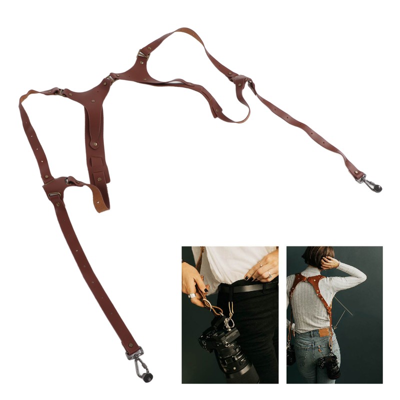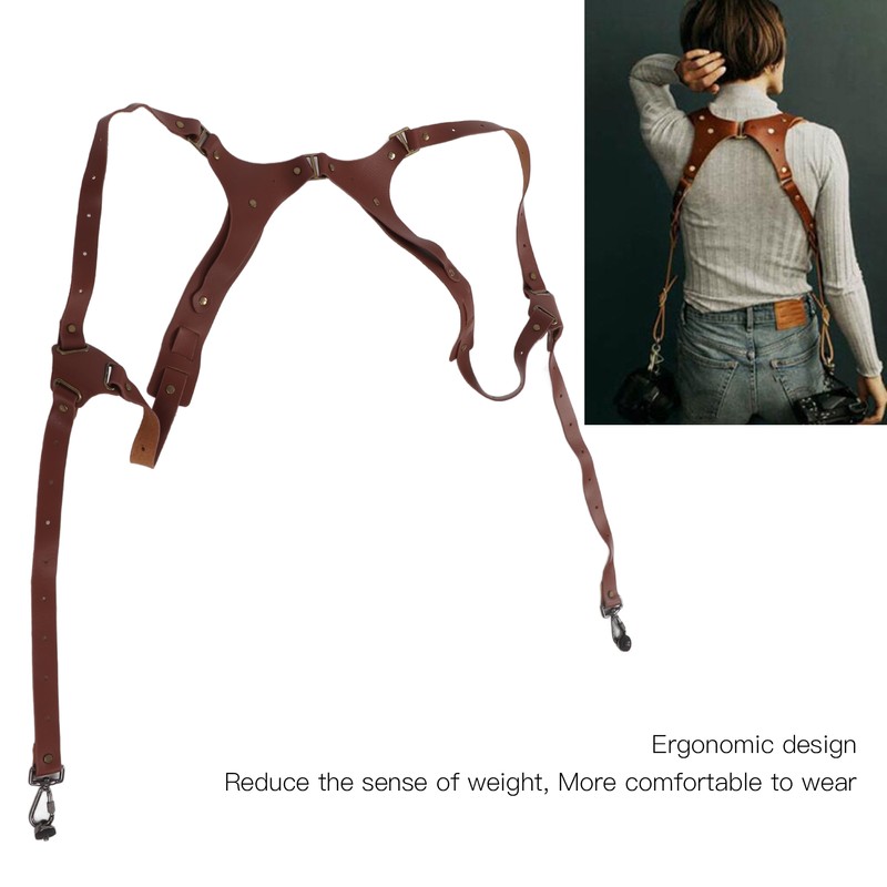 1、Leather Material: Made of high quality leather, it feels comfortable, durable, and wear resistant. 2、Universal Size: Adjustable size, suitable for photography enthusiasts and professional photographers. 3、Reasonable Design: Human body mechanics design reduces the weight bearing feeling and makes it more comfortable to wear. 4、Double Shoulder Camera Strap: Double shoulder leather camera strap can carry two cameras at the same time for quick shooting. 5、Installation Method: Put the camera strap on your shoulders, adjust the elasticity on both sides until it is in the right position, and fix it to the bottom of the camera with 1/4in screw.
